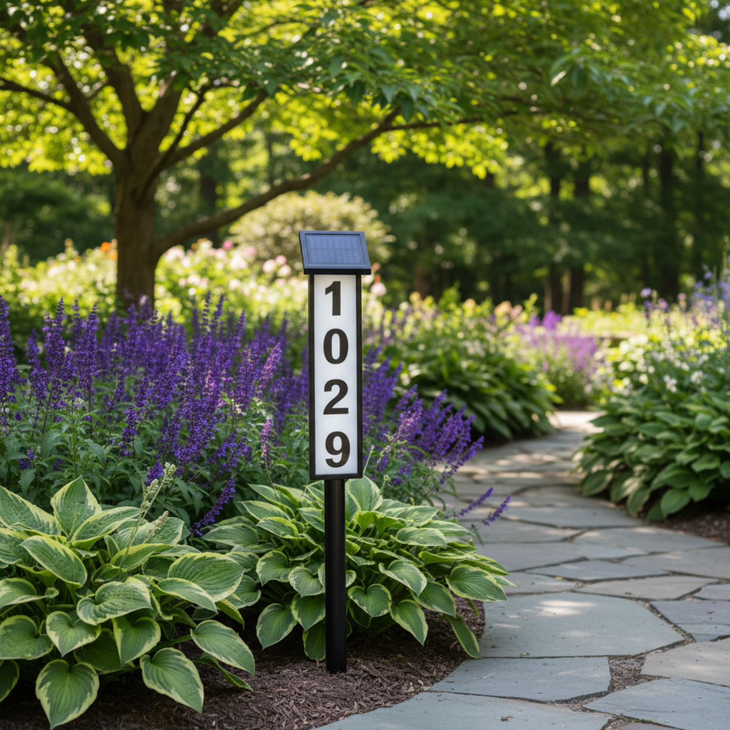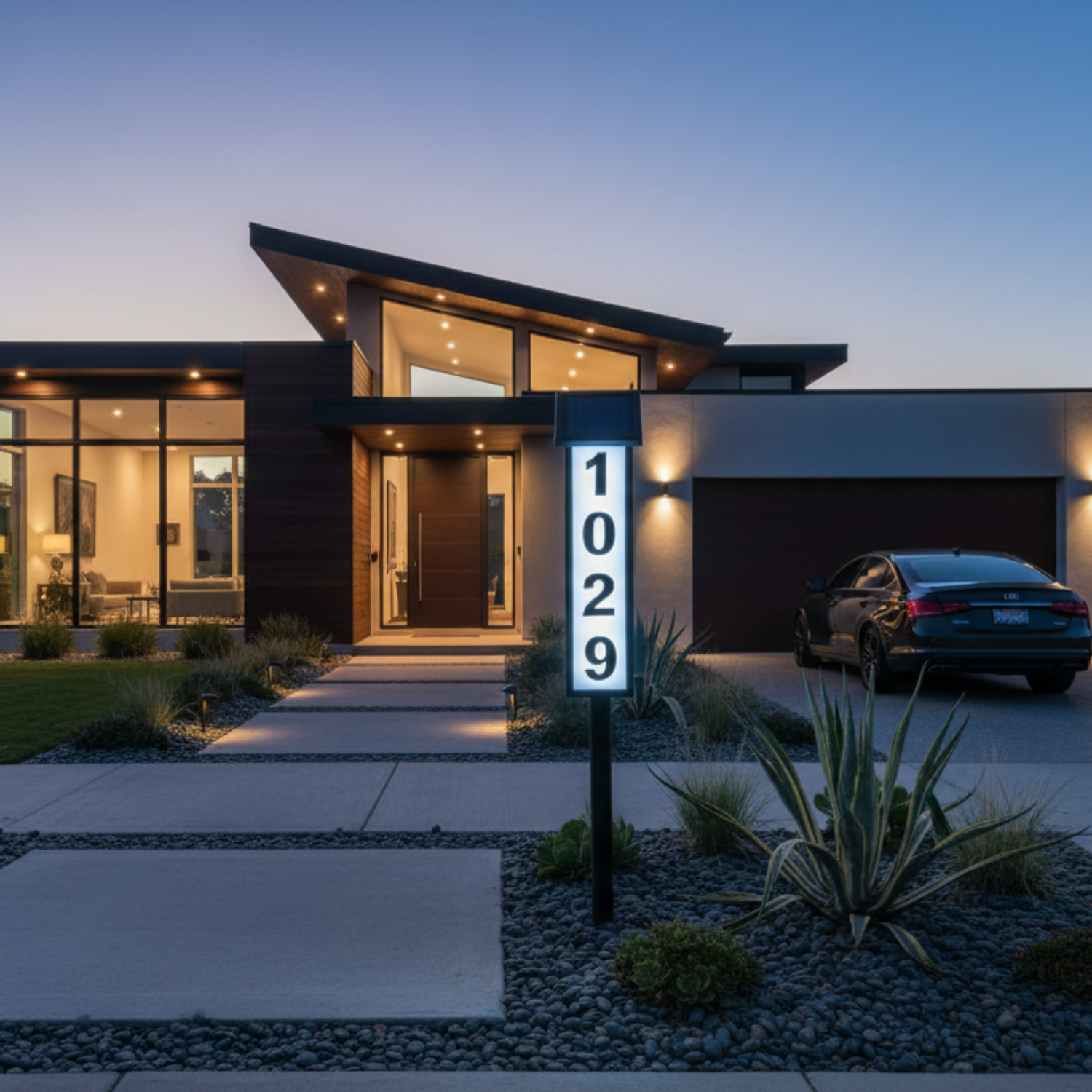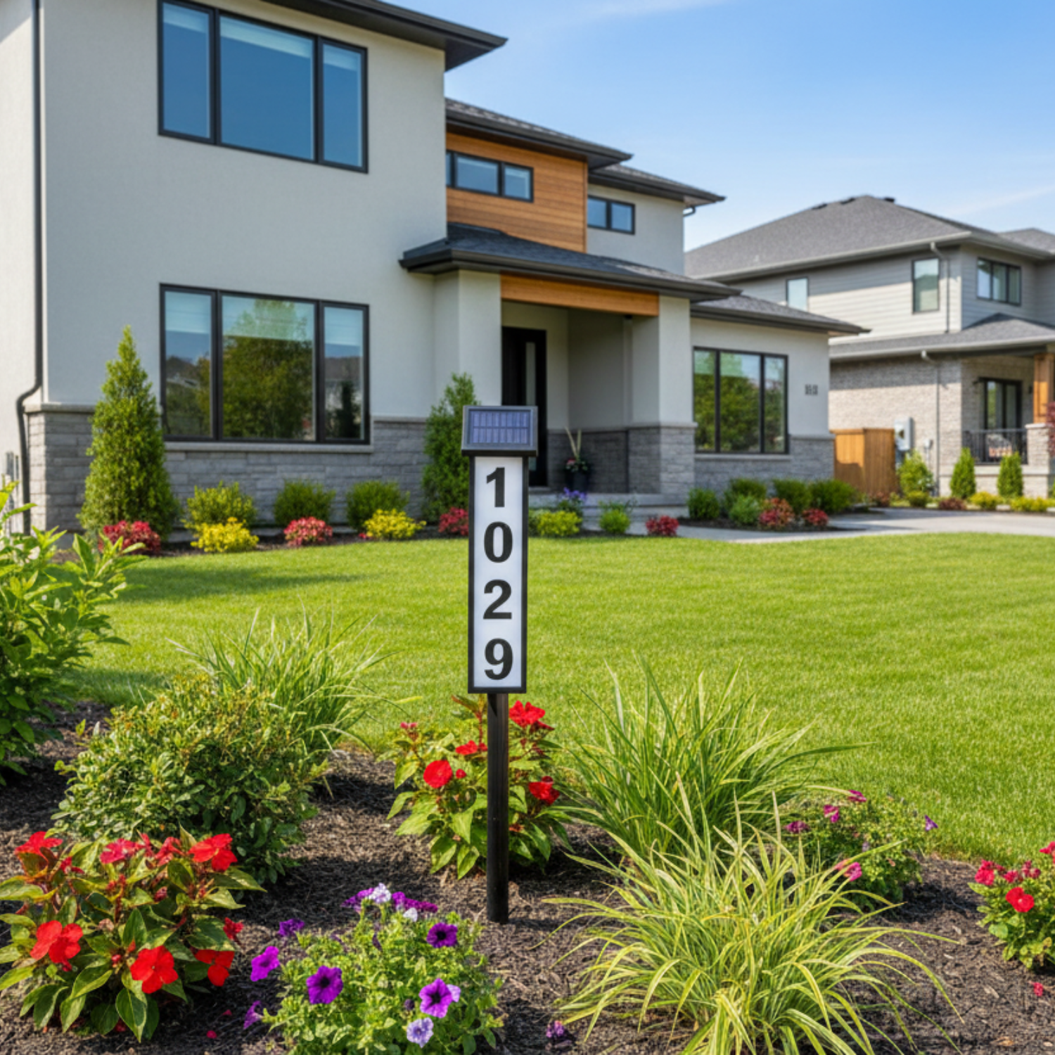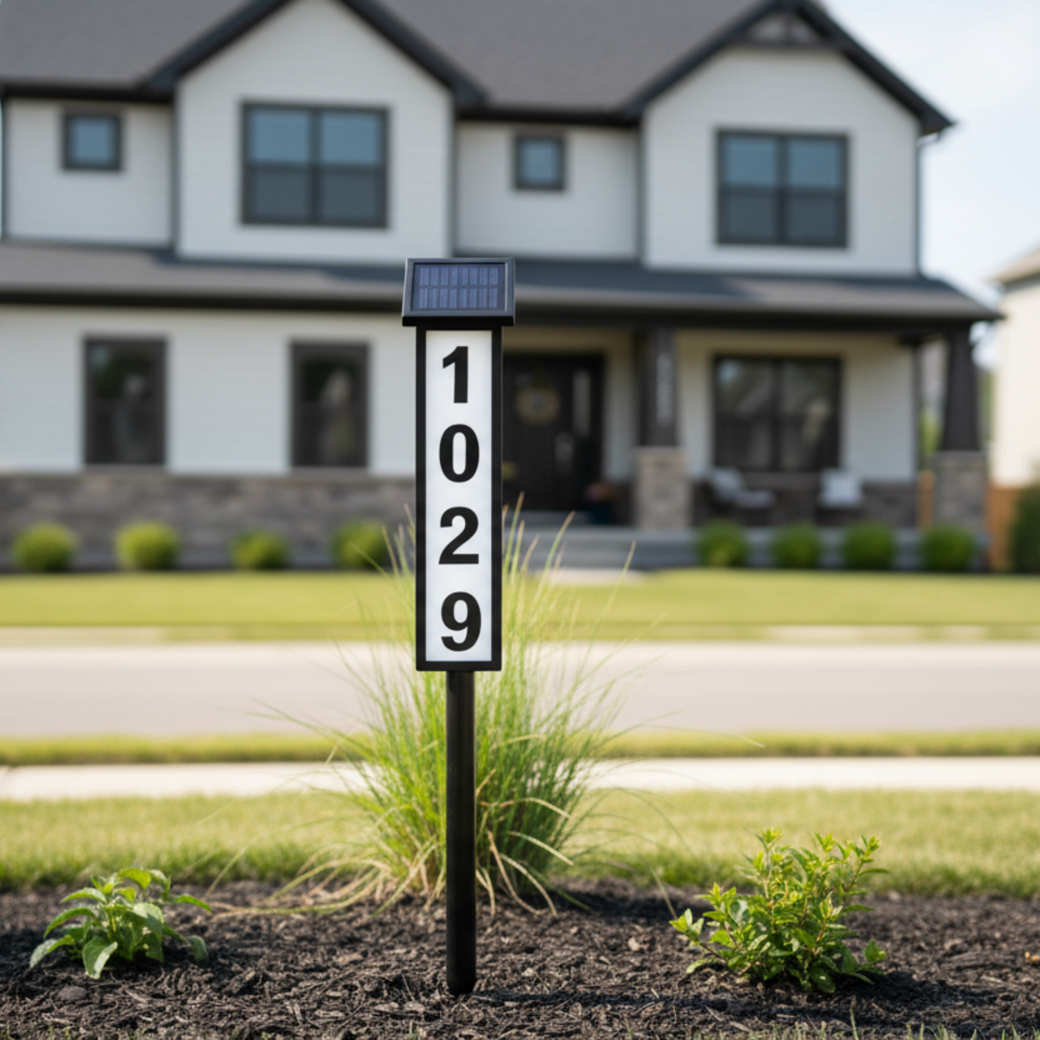 The Solar House Number Light provides eco-friendly illumination for your home's address. This modern LED lighting solution charges during the day and automatically lights up at night, helping keep your house numbers visible.